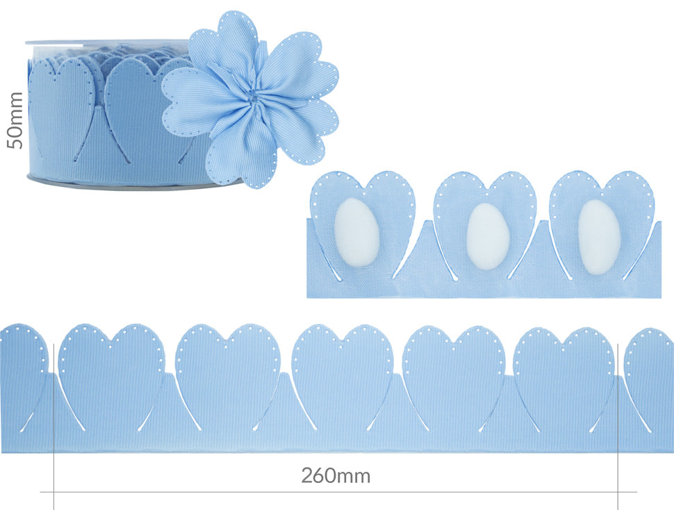 Il nastro Cuore Gros Grain si presenta come nastro doppio, da un lato coprente e dall’altro trasparente, tagliato e bordato con disegni a forma di petali ripetuti a sequenza. Elegante, raffinato, morbido al tatto è adatto alla realizzazione di bomboniere fai da te per ogni tipo di occasione e di cerimonia: battesimo, comunione, cresima, laurea, matrimonio, diciottesimo, fidanzamento. Codice colore# 35 - CONFEZIONATO IN BOBINA DA METRI 10