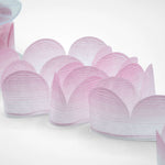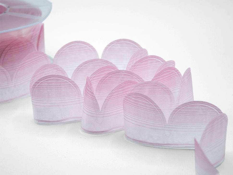 Portaconfetti Petalo Liberty Rosa Baby. Il nastro porta confetti permette di confezionare una bomboniera in modo semplice divertente. Si presenta come nastro doppio, da un lato coprente e dall’altro trasparente, tagliato e bordato con disegni a forma di petali ripetuti a sequenza. Elegante, raffinato, morbido al tatto è adatto alla realizzazione di bomboniere fai da te per ogni tipo di occasione e di cerimonia: battesimo, comunione, cresima, laurea, matrimonio, diciottesimo, fidanzamento. Ideale anche come segnaposto. Facilissimo da lavorare, per confezionare la nostra coccarda basta srotolare il nastro, inserire in ogni petalo un confetto, tagliare il nastro dopo 5 tasche, afferrare i tiranti laterali di entrambi i nastri e tirare, ottenendo così con un semplice gesto dei bellissimi fiori con 5 petali e cinque confetti. Per fare 5 petali, ovvero una bomboniera, servono 26 cm di nastro porta-confetti. Codice colore# 20 - CONFEZIONATO IN BOBINA DA METRI 25