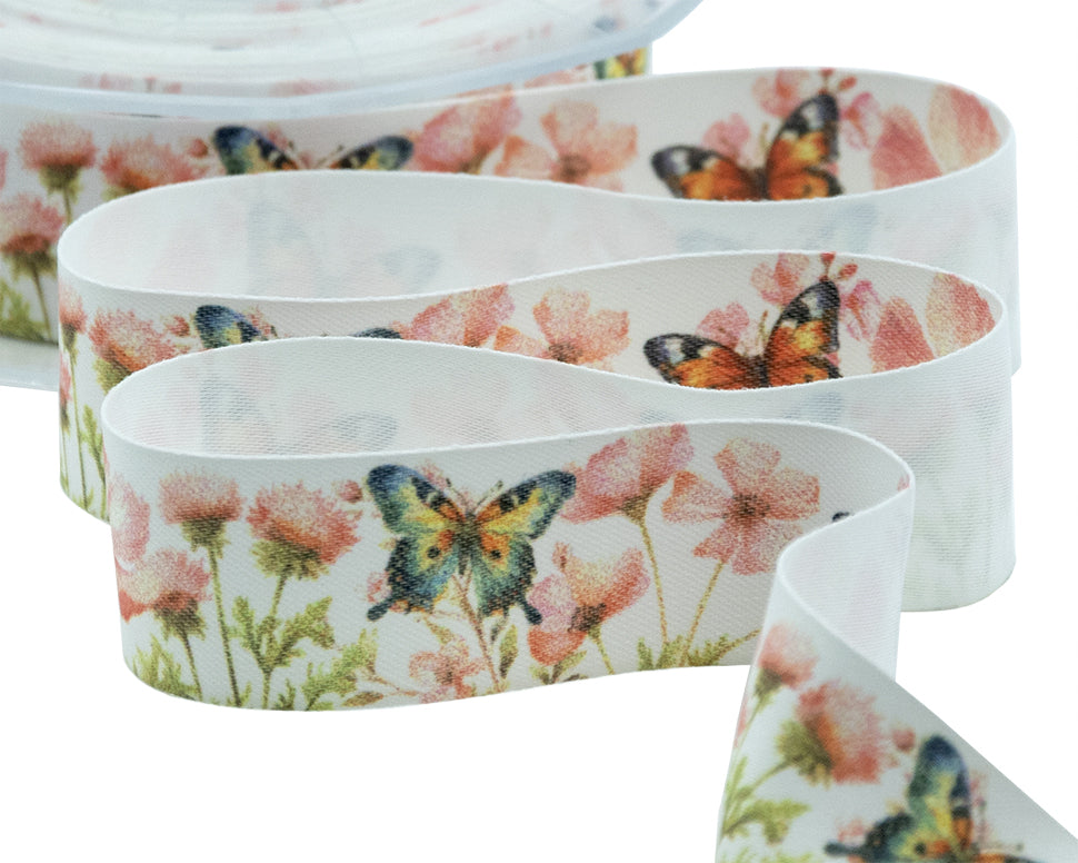 Raso Seta 25 mm Stampa Fiorito Rosa. Il raso seta è un nastro molto delicato, adatto ad ogni tipo di confezionamento. Grazie alla sua leggerezza e setosità, può essere utilizzato nella creazione di bomboniere e decorazioni per cerimonie ed eventi eleganti. Le cimosse lisce e la sua texture opaca donano estrema morbidezza al nastro, rendendolo facile da lavorare e adatto alla realizzazione di fiocchi e rifiniture. Qui è presentato in una variante con stampa digitale. Codice colore #24G21 - CONFEZIONATO IN BOBINA DA METRI 15