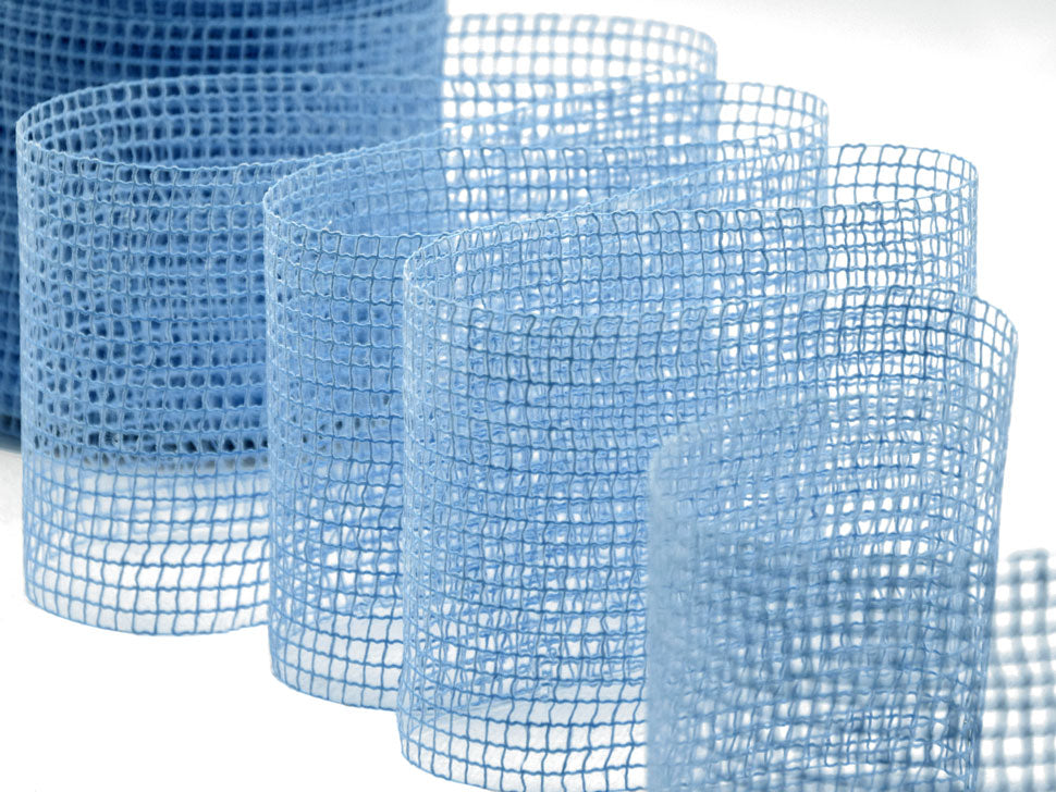 Retina 100 MM Azzurro Baby. Rete per confezioni e decorazioni tessuta con un filato cotoniero, opaco, dall'aspetto molto naturale, anche detta rete Africa. Codice colore# 593 - CONFEZIONATO IN BOBINA DA METRI 15