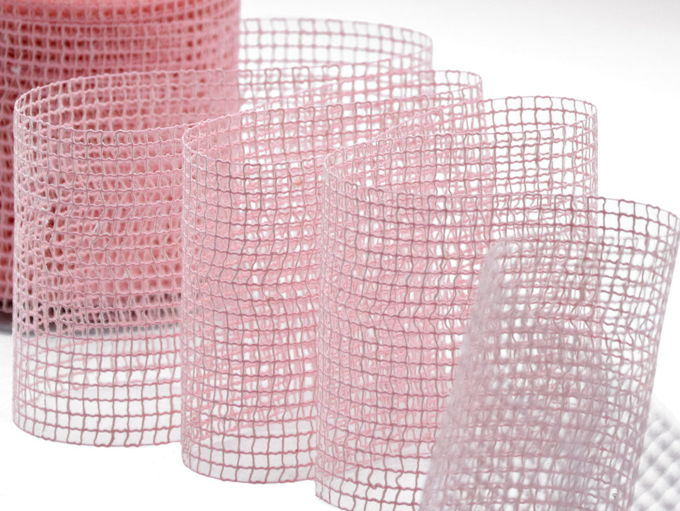 Retina 100 MM Rosa Baby. Rete per confezioni e decorazioni tessuta con un filato cotoniero, opaco, dall'aspetto molto naturale, anche detta rete Africa. Codice colore# 20 - CONFEZIONATO IN BOBINA DA METRI 15
