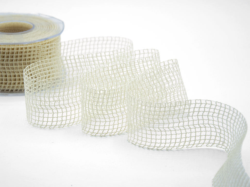 Retina 50 MM Vaniglia. Rete per confezioni e decorazioni tessuta con un filato cotoniero, opaco, dall'aspetto molto naturale, anche detta rete Africa. Codice colore# 59 - CONFEZIONATO IN BOBINA DA METRI 15