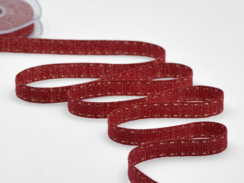 Rustico Lurex con Impuntura Rosso 15 mm. Il nastro Rustico è molto elegante, grazie soprattutto al filato lurex abbinato al filato cotoniero rosso, e abbina l’antico con il moderno, la tradizione naturale con l’eleganza più raffinata. E’ il complemento ideale per i prodotti artigianali e può essere utilizzato anche nelle cerimonie più eleganti. Questo nastro trasmette calore e semplicità. Il nastro Rustico con impuntura è molto caratteristico grazie al suo aspetto naturale ed elegante, perfetto per dare un effetto chic ed eco ad ogni tipo di decorazione. Basta giocare con la fantasia e usare questi nastri per la realizzazione di svariati progetti fai da te e artigianali; sono perfetti per il tema natalizio, country, vintage e shabby chic. Prodotti con materiale di alta qualità. Codice colore# 31 - CONFEZIONATO IN BOBINA DA METRI 20