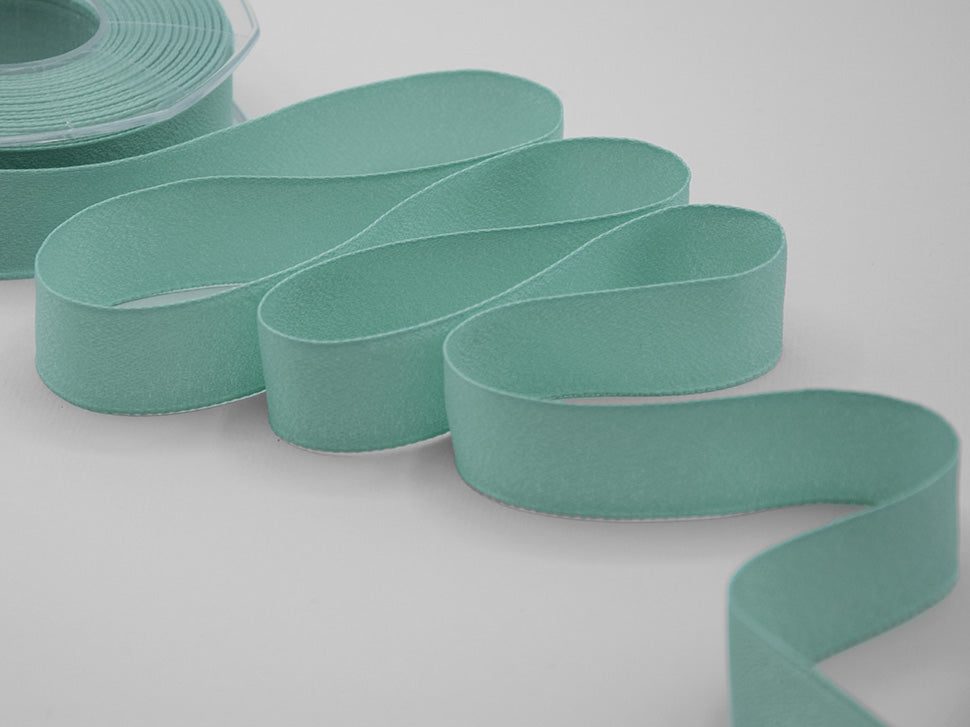 Sable 25 MM Verde Acqua Marina. Nastro tipo crepe sottile, coprente, opaco, morbido e setoso, con tessitura sabbiata, adatto per qualsiasi confezione e decorazione. Codice colore# 64 - CONFEZIONATO IN BOBINA DA METRI 25