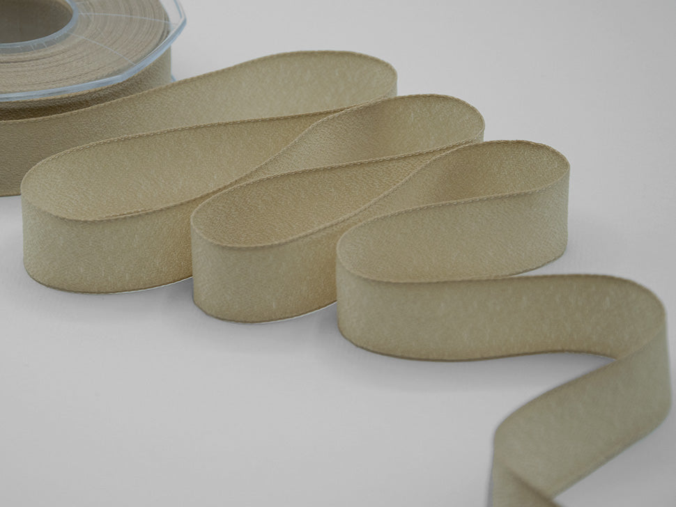 Sable 42 MM Beige. Nastro tipo crepe sottile, coprente, opaco, morbido e setoso, con tessitura sabbiata, adatto per qualsiasi confezione e decorazione. Codice colore# 2 - CONFEZIONATO IN BOBINA DA METRI 25