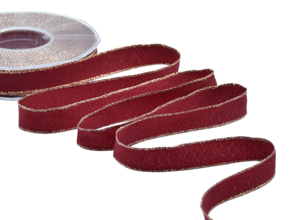 Sable Bordi Lurex Con Rame 15 MM Amaranto. Per creare la giusta atmosfera natalizia è indispensabile prestare attenzione ad ogni dettaglio come scegliere il nastro giusto come l’articolo D13 in tutte le sue versioni. L’articolo Sablé bordi Lurex è pensato per il Natale, sia per l’arredamento, perché immerge la tua casa immediatamente in quella tipica atmosfera natalizia, sia per le creazioni come ghirlande, fiocchi per l’albero di Natale, per le confezioni di pacchetto regalo. Il sablè ha una trama irregolare e sabbiata, è un nastro coprente, opaco, morbido e setoso. I bordi del nastro Sablè in lurex sono rinforzati quindi sono durevoli e flessibili, facili da modellare e mantengono la loro forma per i vari scopi di decorazione.. Codice colore# 46 - CONFEZIONATO IN BOBINA DA METRI 25