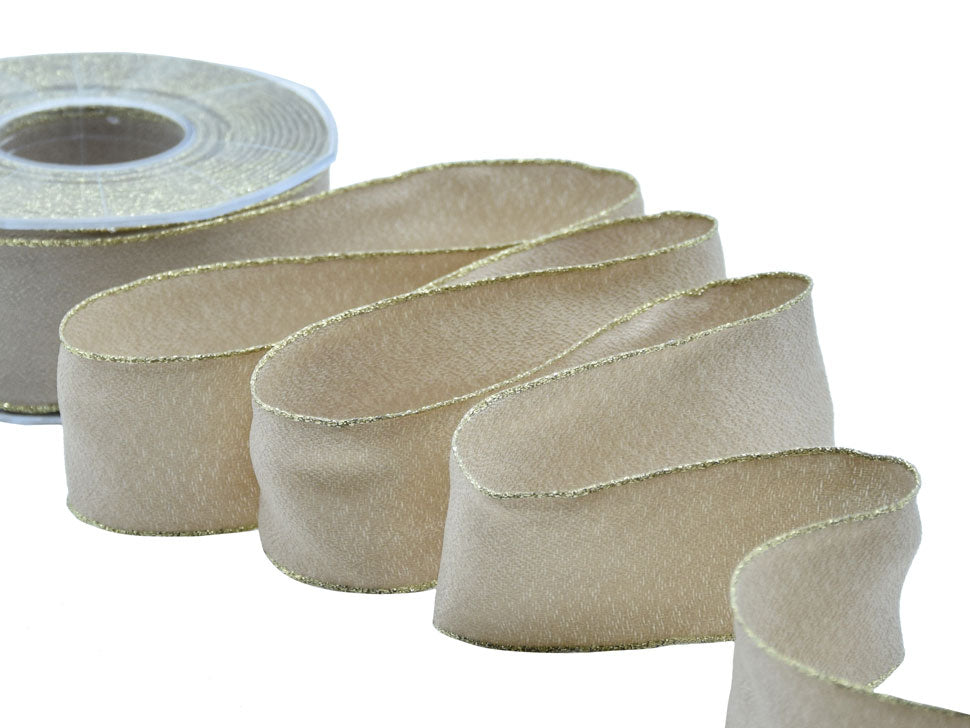 Sable Bordi Lurex Con Rame 40 MM Beige. Per creare la giusta atmosfera natalizia è indispensabile prestare attenzione ad ogni dettaglio come scegliere il nastro giusto come l’articolo D13 in tutte le sue versioni. L’articolo Sablé bordi Lurex è pensato per il Natale, sia per l’arredamento, perché immerge la tua casa immediatamente in quella tipica atmosfera natalizia, sia per le creazioni come ghirlande, fiocchi per l’albero di Natale, per le confezioni di pacchetto regalo. Il sablè ha una trama irregolare e sabbiata, è un nastro coprente, opaco, morbido e setoso. I bordi del nastro Sablè in lurex sono rinforzati quindi sono durevoli e flessibili, facili da modellare e mantengono la loro forma per i vari scopi di decorazione.. Codice colore# 2 - CONFEZIONATO IN BOBINA DA METRI 25