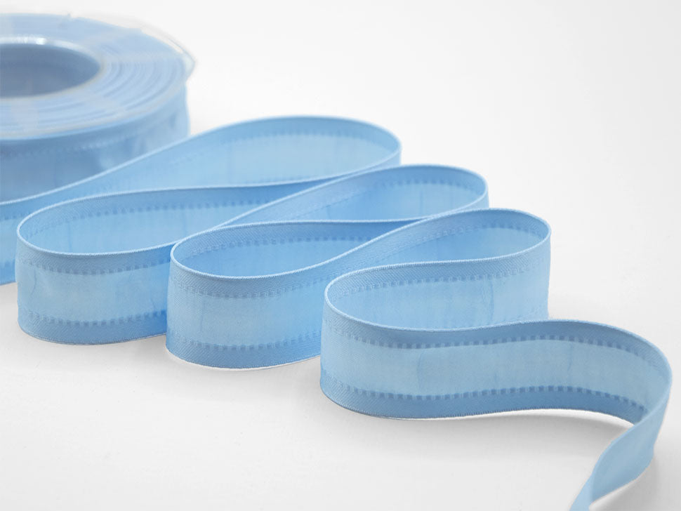 Seta Bordi Rinforzati 25 MM Azzurro Baby. Nastro in tessuto setoso per decorazioni eleganti, matrimoni, nascita, fiocchi, bomboniere. Codice colore# 593 - CONFEZIONATO IN BOBINA DA METRI 20