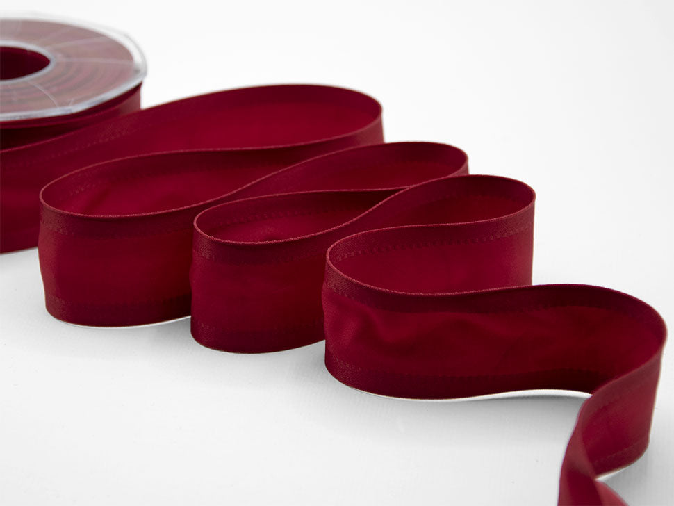 Seta Bordi Rinforzati 38 MM Amaranto. Nastro in tessuto setoso per decorazioni eleganti, matrimoni, nascita, fiocchi, bomboniere. Codice colore# 46 - CONFEZIONATO IN BOBINA DA METRI 20