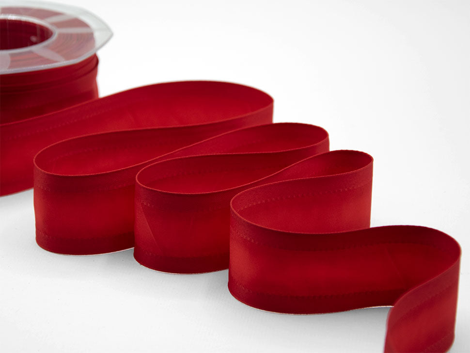 Seta Bordi Rinforzati 38 MM Rosso. Nastro in tessuto setoso per decorazioni eleganti, matrimoni, nascita, fiocchi, bomboniere. Codice colore# 31 - CONFEZIONATO IN BOBINA DA METRI 20