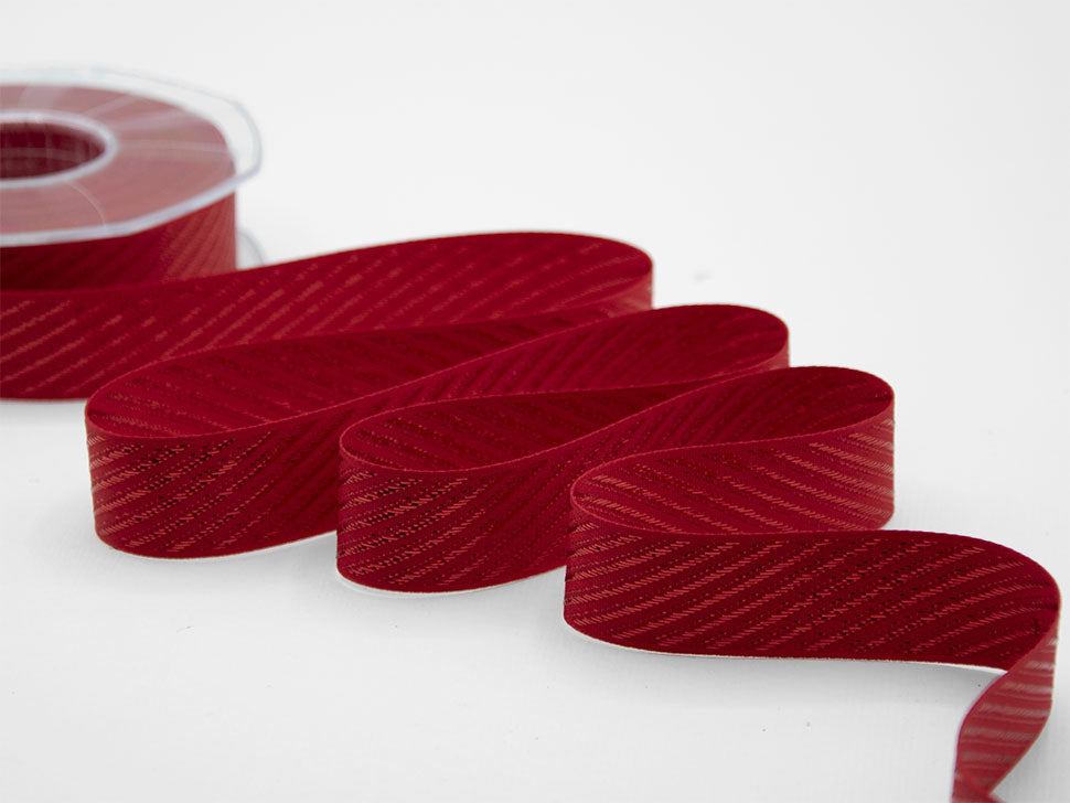 Sugar Cane 25 MM Rosso. E’ il nastro che dà forza all’evento. ARGENTO – ORO – ROSSO cosa c’è di più per la Tua festa. Lo usi a Natale e Capodanno, lo usi a San Valentino e al compleanno della tua lei o del tuo lui. Puoi mandare il messaggio forte con l’altezza 40mm oppure più pacato, romantico con le altezze 20 -25mm. Codice colore# 31 - CONFEZIONATO IN BOBINA DA METRI 20