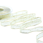 Veletta Oro Argento 16 MM Oro. Il nastro veletta è un nastro rustico e trasparente, tessuto con filato bouclè che pur coprendo e nascondendo, lascia intravedere ciò che sta sotto.