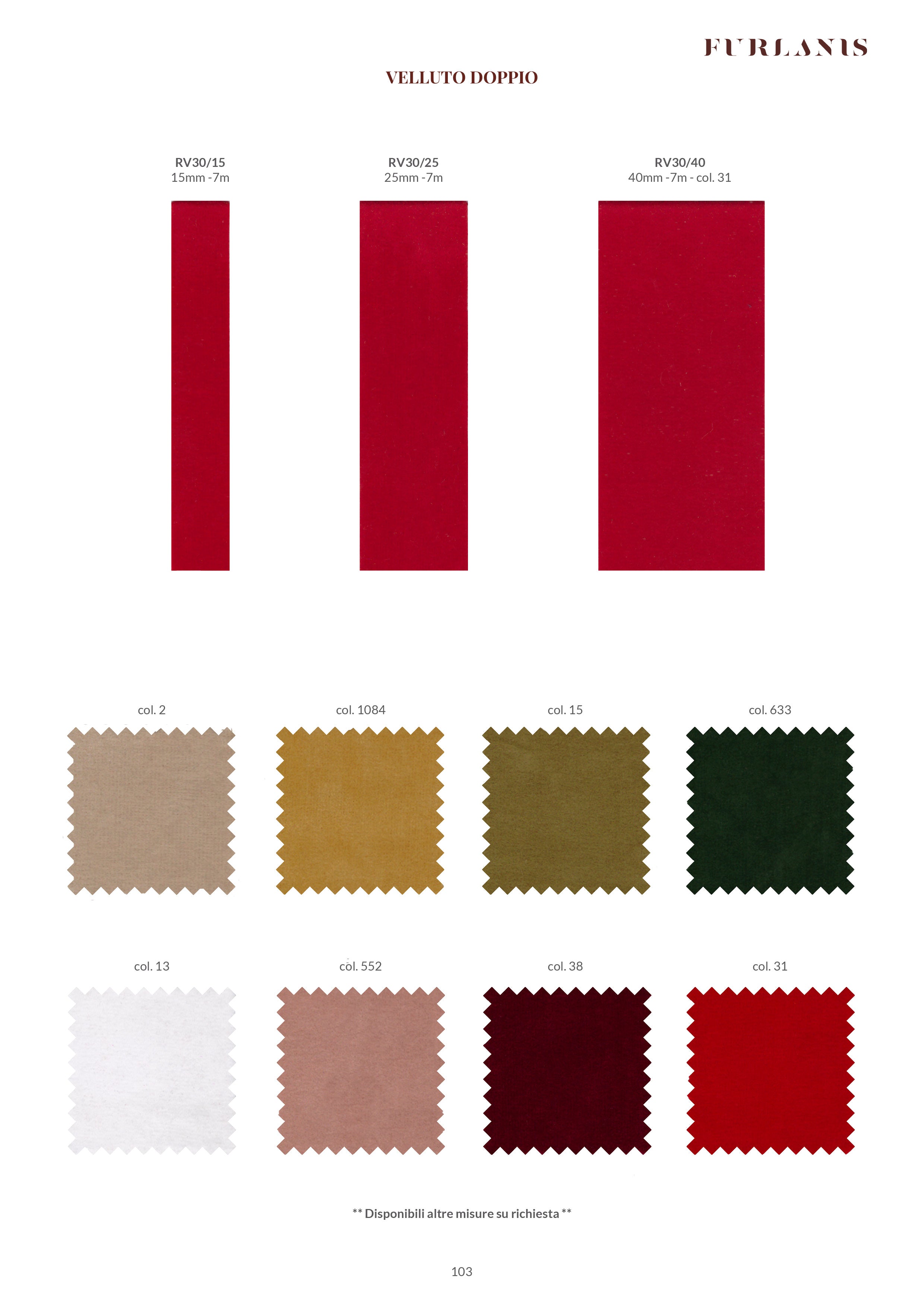 Velluto Doppio 40 mm Bordeaux Scuro. Il nastro in velluto doppio si presta molto bene alla creazione di fiocchi e addobbi per il periodo autunnale e natalizio. Caldo e piacevole al tatto può essere utilizzato in molteplici occasioni, dal semplice confezionamento di pacchi regalo ed addobbi per l’albero, alla personalizzazione di regali fatti a mano. Essendo doppio, il velluto rende il nastro molto ricco e bello da entrambi i lati. Disponibile in una vasta gamma di colori caldi e diverse altezze. Codice colore # 38. Confezionato in bobina da 7 metri.