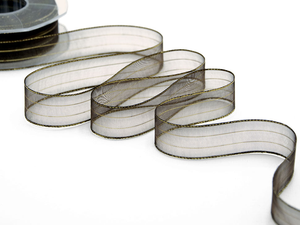 Velo Elegante 25 MM Cacao. Meravigliosa organza con fili d'oro, elegante e raffinata. Codice colore# 49 - CONFEZIONATO IN BOBINA DA METRI 25