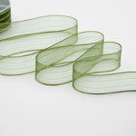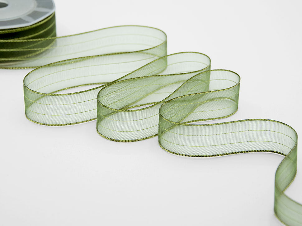 Velo Elegante 25 MM Verde Inglese. Meravigliosa organza con fili d'oro, elegante e raffinata. Codice colore# 633 - CONFEZIONATO IN BOBINA DA METRI 25