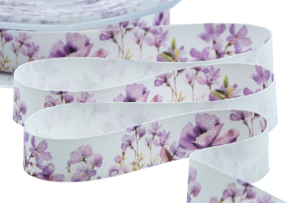 Raso Seta 15 mm Stampa Fiorito Lilla