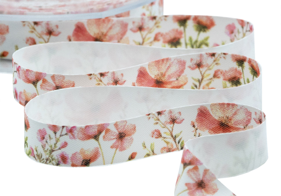 Raso Seta 15 mm Stampa Fiorito Rosa