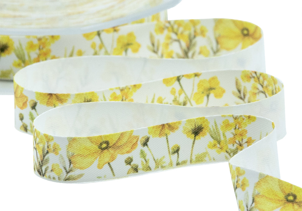 Raso Seta 15 mm Stampa Fiorito Giallo