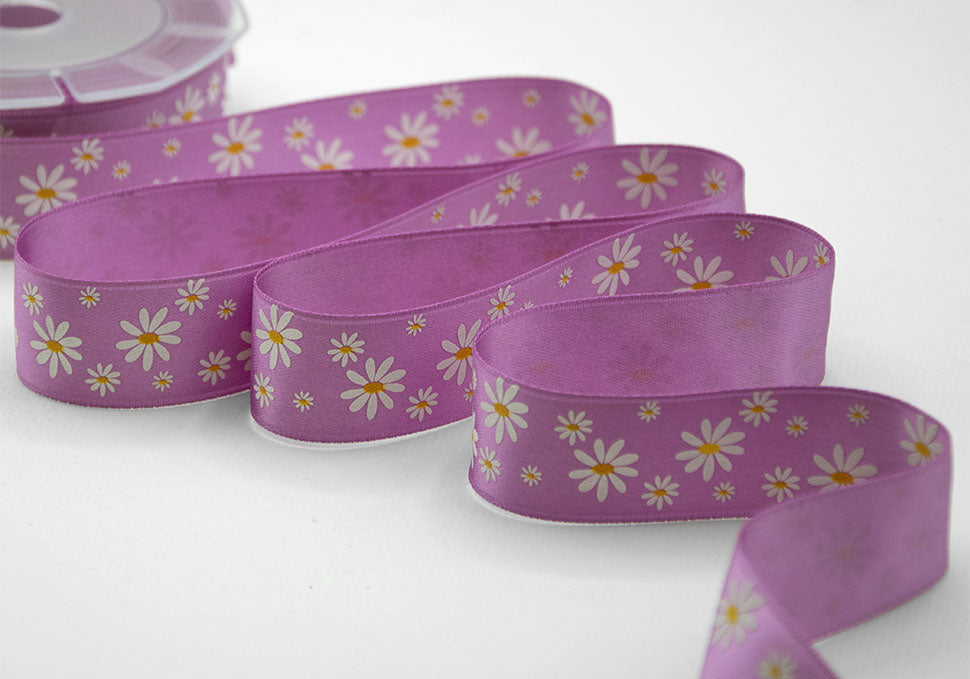 Doppio Raso Stampa Serigraf.25 mm Margherite Bicolor Ciclamino C