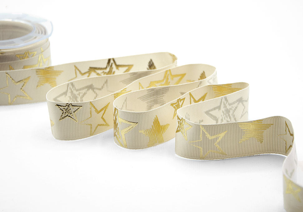 Gros Grain 30 mm Avorio Stampa Stelle Oro