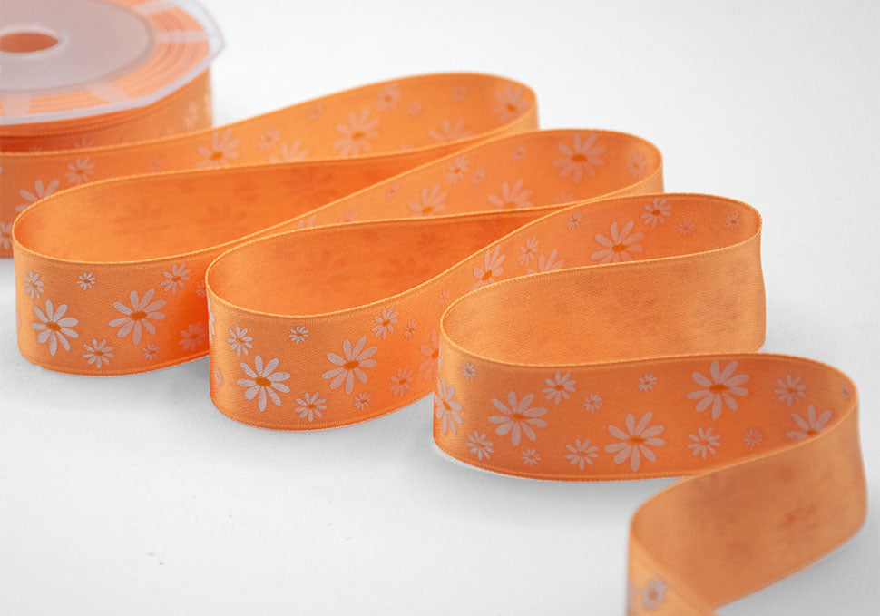 Doppio Raso Stampa Serigraf.25 mm Margherite Bicolor Arancio