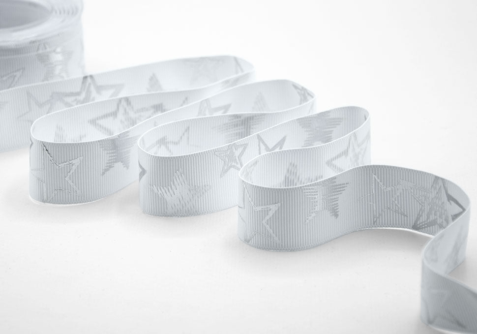 Gros Grain 30 mm Bianco Ottico Stampa Stelle Argento