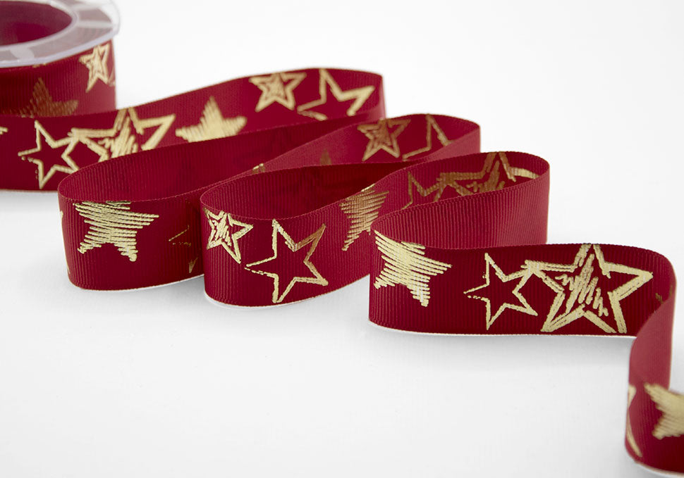 Gros Grain 30 mm Amaranto Stampa Stelle Oro