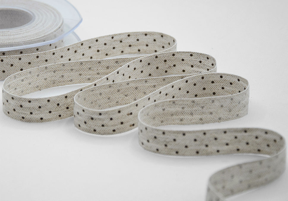 Nastro Lino Canapa 16 mm Serig. Pois Marrone