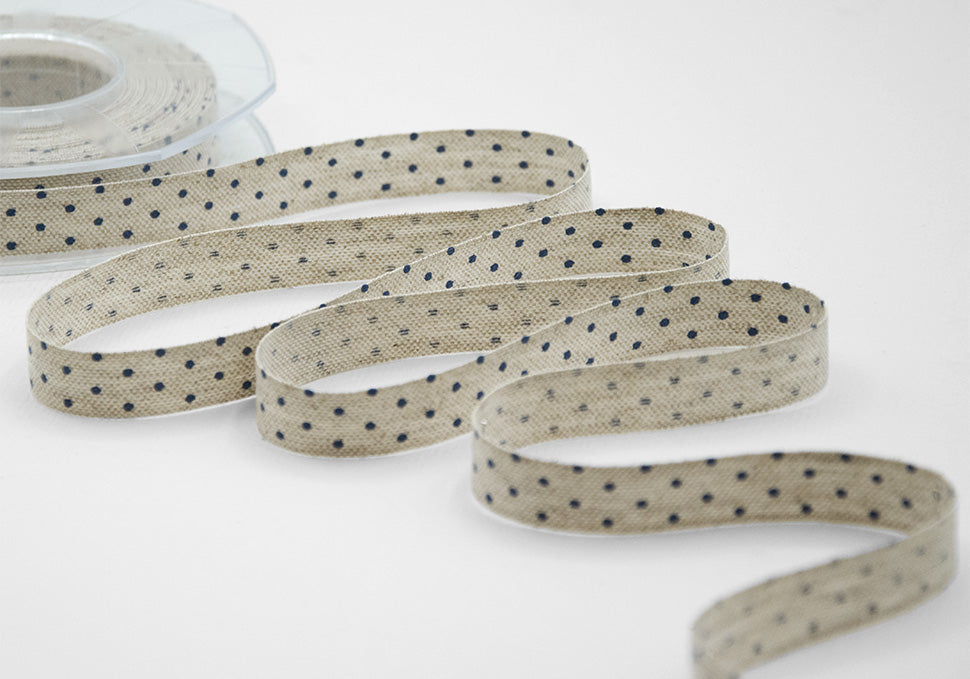 Nastro Lino Canapa 16 mm Serig. Pois Blu Scuro