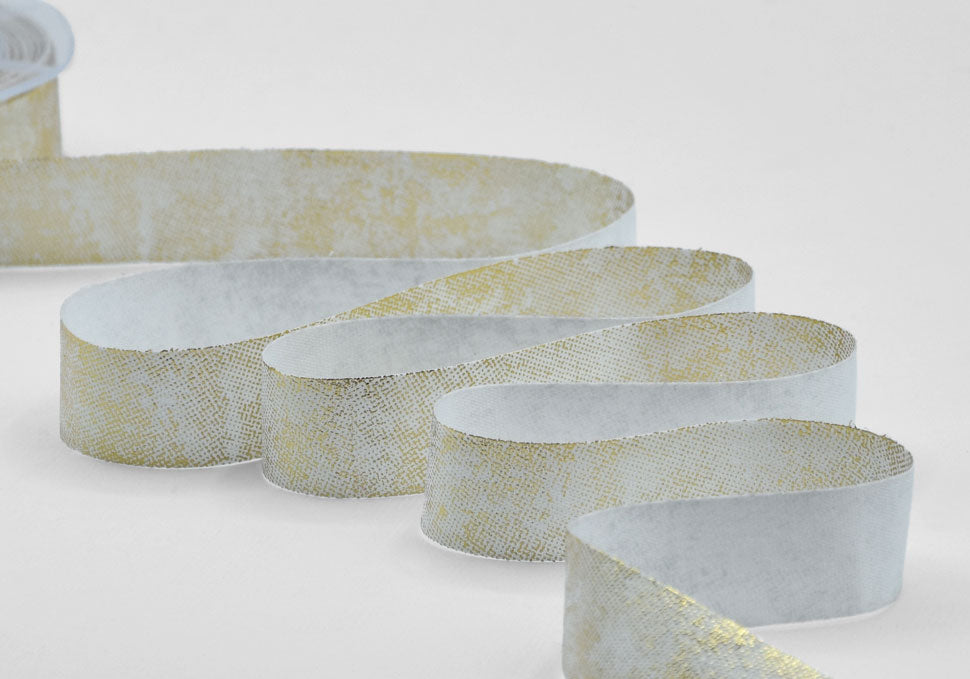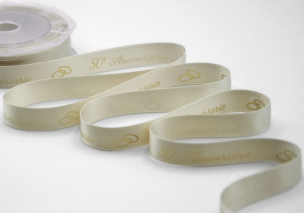 Raso Lamè 10mm Stampa Offset "Prodotto artigianale" Oro