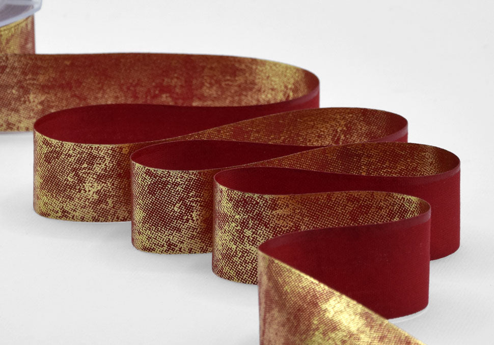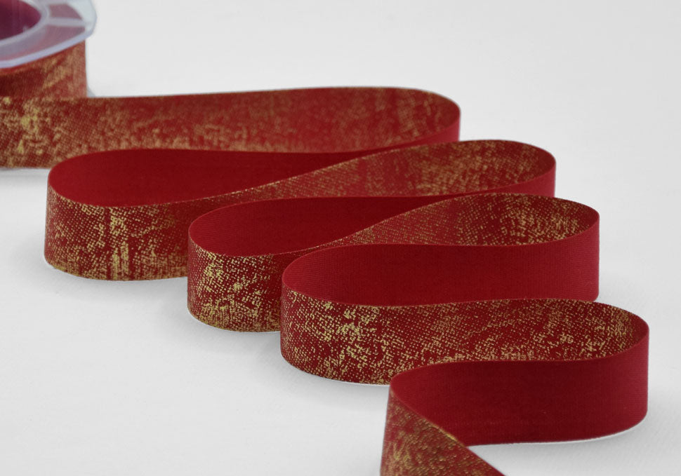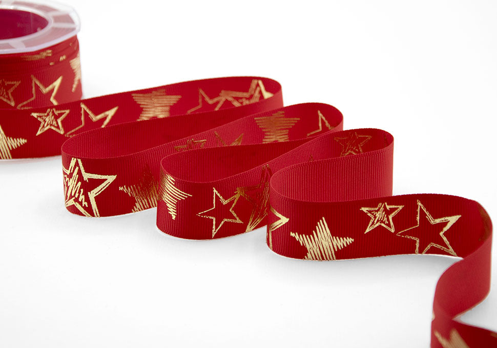 Gros Grain 30 mm Rosso Stampa Stelle Oro