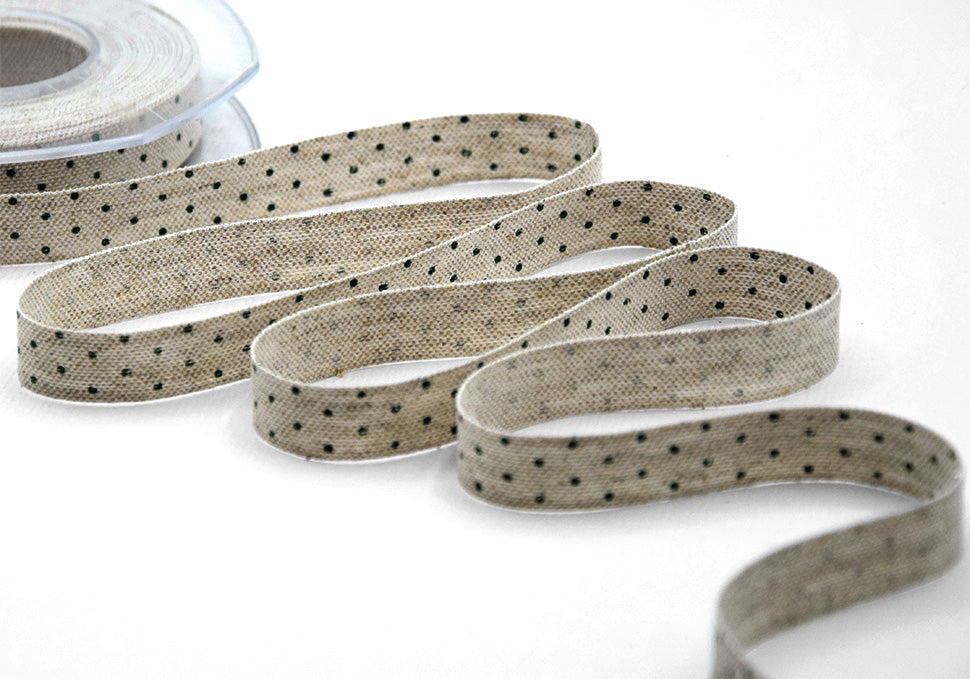 Nastro Lino Canapa 16 mm Serig. Pois Verde Inglese