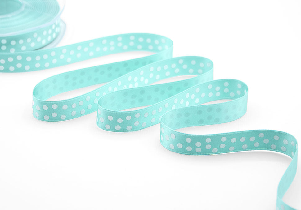 D. Raso 16 mm Stampa Pois Bianchi Verde Acqua Marina