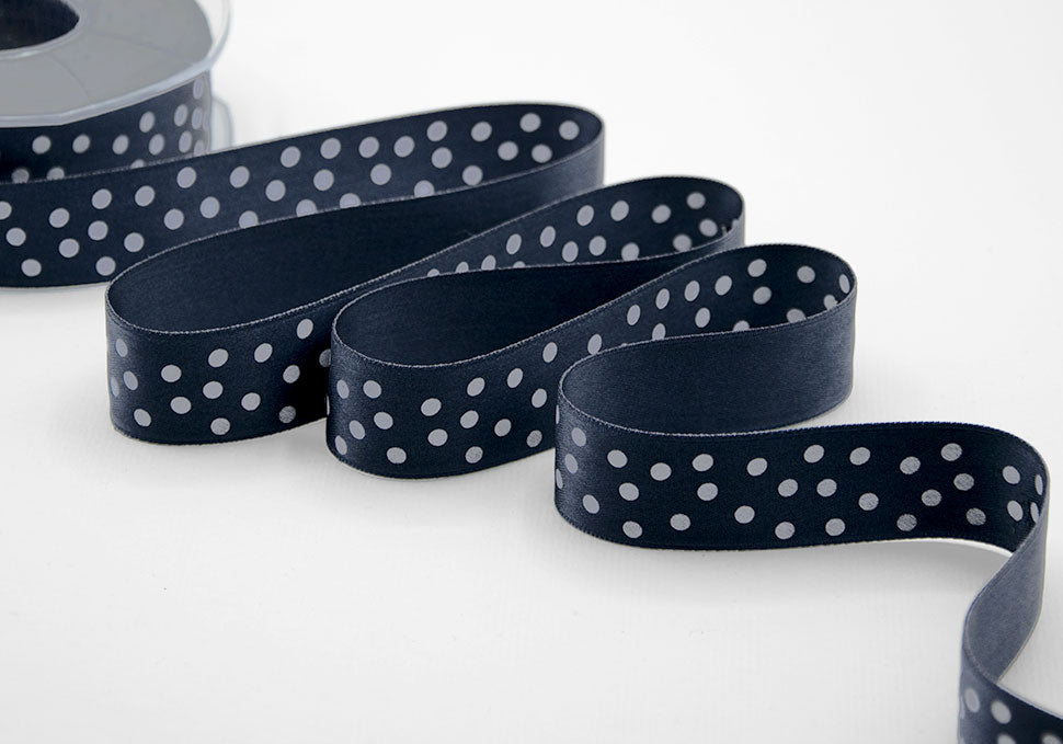 D.Raso 25 mm Stampa Pois Bianchi Blu Notte
