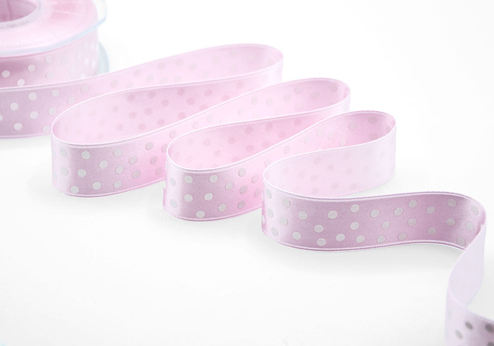 D.Raso 25 mm Stampa Pois Bianchi Rosa Baby