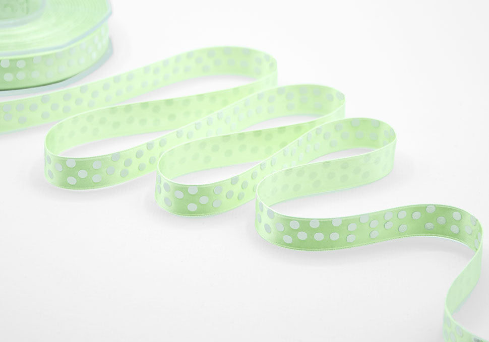 D.Raso 16 mm Stampa Pois Bianchi Verde Mela Chiaro