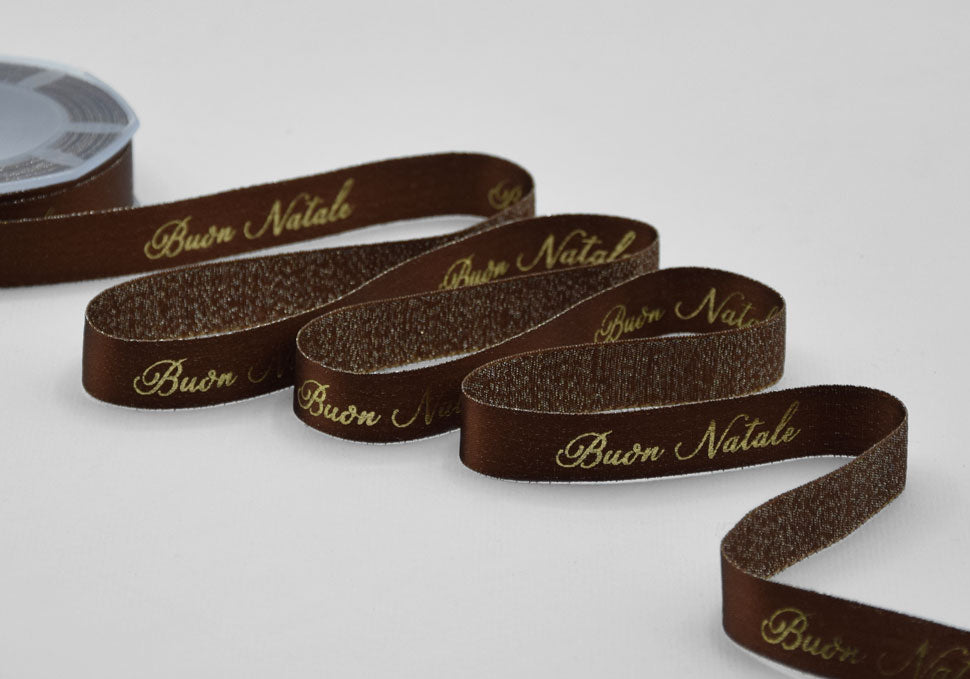 Raso Boutique Lame 16 mm Ser. Laminata Decoro Elegante Buon Natale Marrone