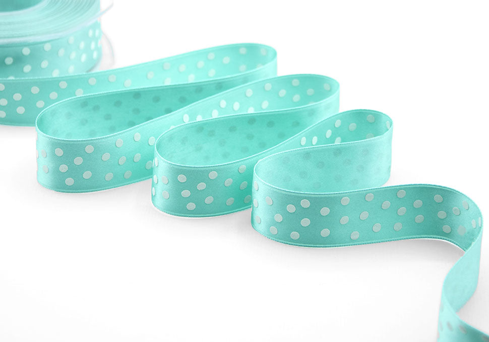 D. Raso 25 mm Stampa Pois Bianchi Verde Acqua Marina