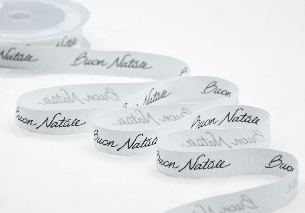 Raso Boutique Lame 25 mm Ser. Laminata Buon Natale Argento