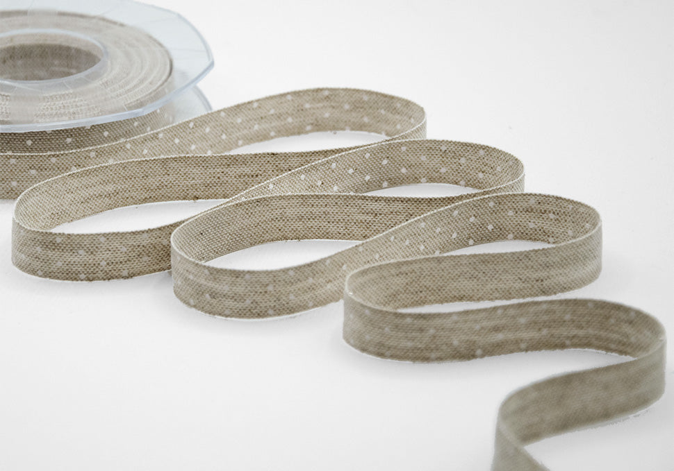 Nastro Lino Canapa 16 mm Serig. Pois Bianco Ottico
