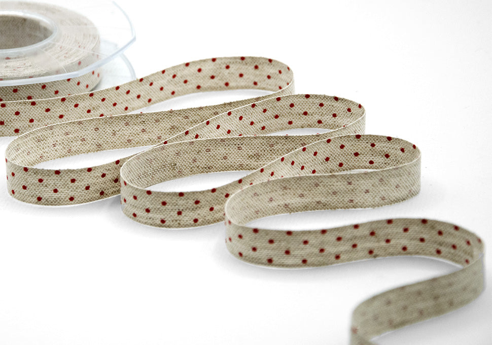 Nastro Lino Canapa 16 mm Serig. Pois Rosso