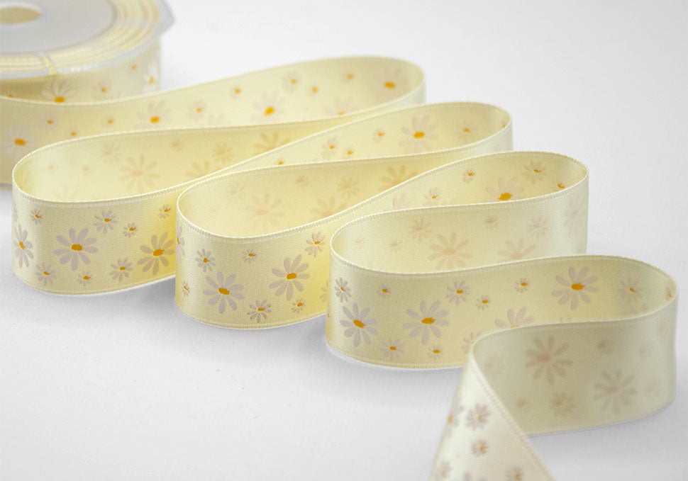 Doppio Raso Stampa Serigraf.25 mm Margherite Bicolor Vaniglia