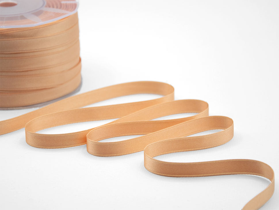 Il nastro elegante e raffinato per definizione è il doppio raso. È versatile e bello da lavorare e, nella sua semplicità, si presta ad ogni utilizzo. Essendo un prodotto di alta qualità si annoda molto facilmente formando un bel fiocco con le code che presentano un taglio netto e definito, che non si sfilaccia. Il suo aspetto è luminoso, consistente e corposo, ma al tatto è decisamente delicato e setoso. I suoi 10mm di altezza e le infinite possibilità di personalizzazione lo rendono un nastro ideale per molteplici utilizzi: dalla confezione di bomboniere di matrimoni e cerimonie alla decorazione dei fiori e della tavola; dalle confezioni regalo, anche natalizie, a tutti gli eventi di pregio. La bobina contiene 100 metri di nastro doppio raso 10mm. Disponibile in un’ampia gamma di tonalità e altezze, viene qui presentato nel colore 127, arancio albicocca