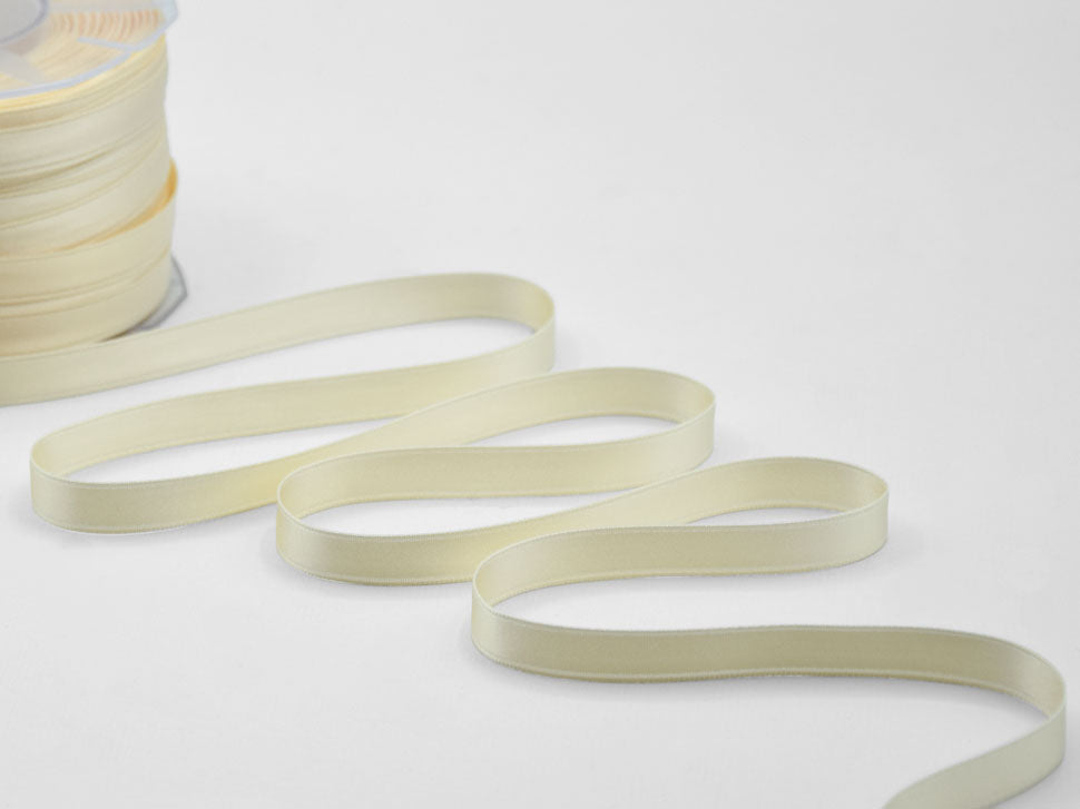 Il nastro elegante e raffinato per definizione è il doppio raso. È versatile e bello da lavorare e, nella sua semplicità, si presta ad ogni utilizzo. Essendo un prodotto di alta qualità si annoda molto facilmente formando un bel fiocco con le code che presentano un taglio netto e definito, che non si sfilaccia. Il suo aspetto è luminoso, consistente e corposo, ma al tatto è decisamente delicato e setoso. I suoi 10mm di altezza e le infinite possibilità di personalizzazione lo rendono un nastro ideale per molteplici utilizzi: dalla confezione di bomboniere di matrimoni e cerimonie alla decorazione dei fiori e della tavola; dalle confezioni regalo, anche natalizie, a tutti gli eventi di pregio. La bobina contiene 100 o 25 metri di nastro doppio raso 10mm. Disponibile in un’ampia gamma di tonalità e altezze, viene qui presentato nel colore 12, champagne