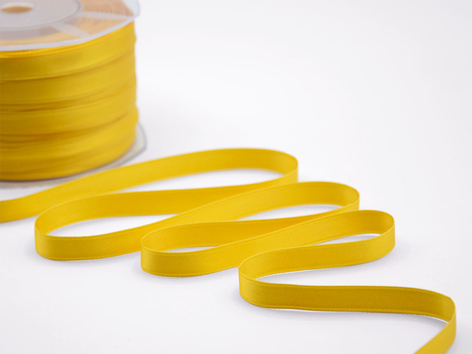 Il nastro elegante e raffinato per definizione è il doppio raso. È versatile e bello da lavorare e, nella sua semplicità, si presta ad ogni utilizzo. Essendo un prodotto di alta qualità si annoda molto facilmente formando un bel fiocco con le code che presentano un taglio netto e definito, che non si sfilaccia. Il suo aspetto è luminoso, consistente e corposo, ma al tatto è decisamente delicato e setoso. I suoi 10mm di altezza e le infinite possibilità di personalizzazione lo rendono un nastro ideale per molteplici utilizzi: dalla confezione di bomboniere di matrimoni e cerimonie alla decorazione dei fiori e della tavola; dalle confezioni regalo, anche natalizie, a tutti gli eventi di pregio. La bobina contiene 100 metri di nastro doppio raso 10mm. Disponibile in un’ampia gamma di tonalità e altezze, viene qui presentato nel colore 1006, giallo sole