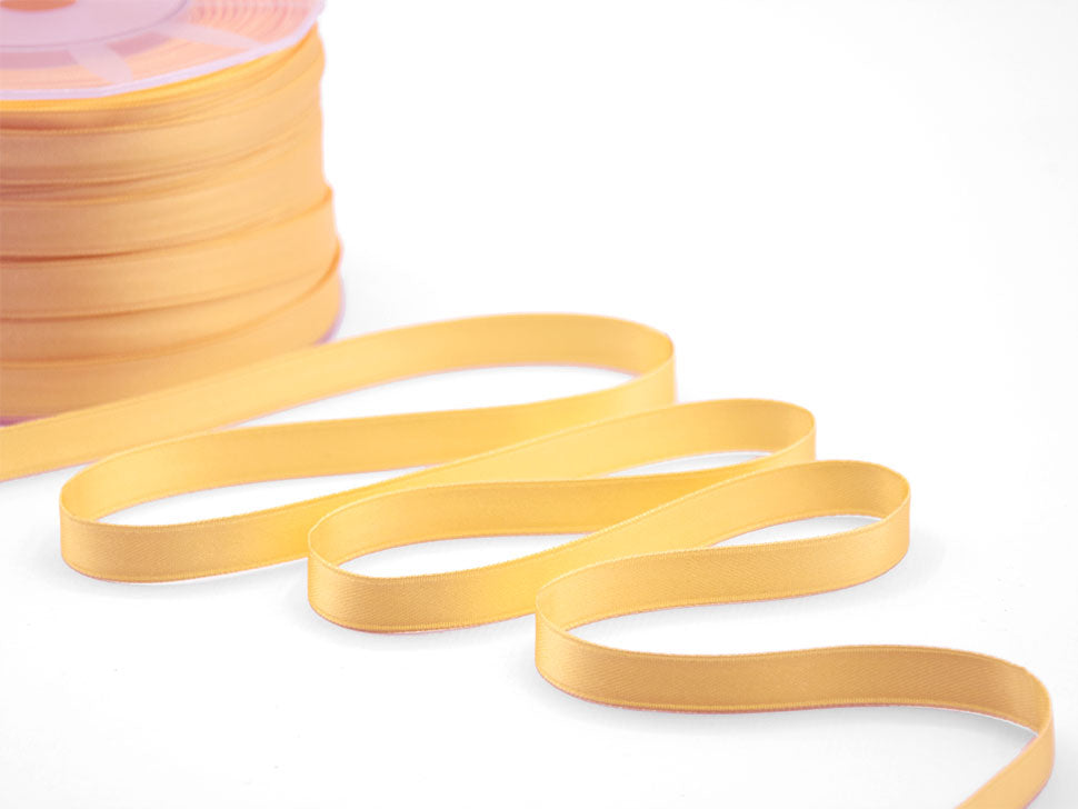 Il nastro elegante e raffinato per definizione è il doppio raso. È versatile e bello da lavorare e, nella sua semplicità, si presta ad ogni utilizzo. Essendo un prodotto di alta qualità si annoda molto facilmente formando un bel fiocco con le code che presentano un taglio netto e definito, che non si sfilaccia. Il suo aspetto è luminoso, consistente e corposo, ma al tatto è decisamente delicato e setoso. I suoi 10mm di altezza e le infinite possibilità di personalizzazione lo rendono un nastro ideale per molteplici utilizzi: dalla confezione di bomboniere di matrimoni e cerimonie alla decorazione dei fiori e della tavola; dalle confezioni regalo, anche natalizie, a tutti gli eventi di pregio. La bobina contiene 100 metri di nastro doppio raso 10mm. Disponibile in un’ampia gamma di tonalità e altezze, viene qui presentato nel colore 126, Zafferano