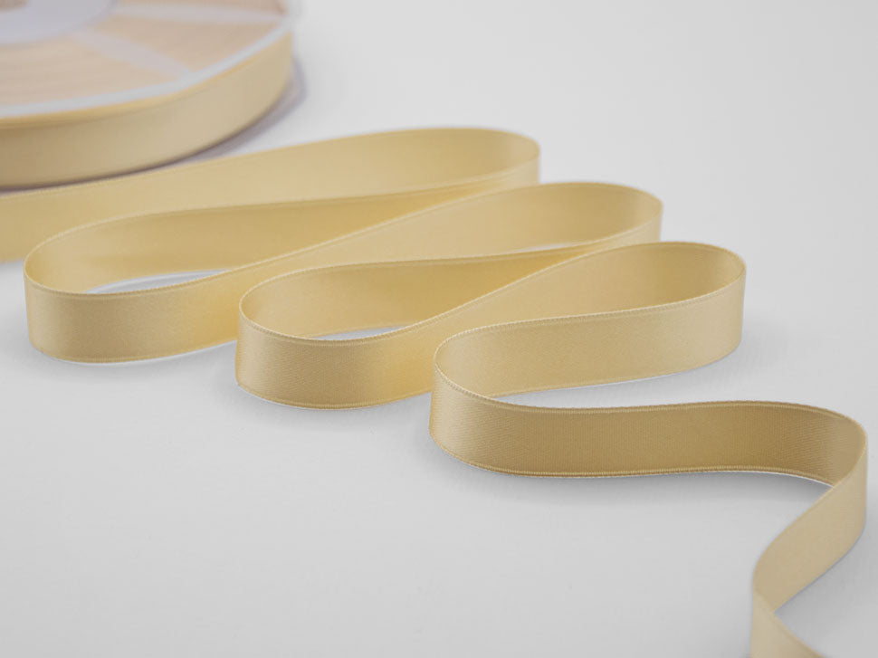 Il nastro elegante e raffinato per definizione è il doppio raso. È versatile e bello da lavorare e, nella sua semplicità, si presta ad ogni utilizzo. Essendo un prodotto di alta qualità si annoda molto facilmente formando un bel fiocco con le code che presentano un taglio netto e definito, che non si sfilaccia. Il suo aspetto è luminoso, consistente e corposo, ma al tatto è decisamente delicato e setoso. I suoi 16mm di altezza e le infinite possibilità di personalizzazione lo rendono un nastro ideale per molteplici utilizzi: dalla confezione di bomboniere di matrimoni e cerimonie alla decorazione dei fiori e della tavola; dalle confezioni regalo, anche natalizie, a tutti gli eventi di pregio. La bobina contiene 50 metri di nastro doppio raso 16mm. Disponibile in un’ampia gamma di tonalità e altezze, viene qui presentato nel colore 177, giallo oro