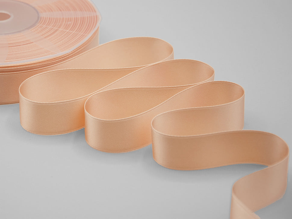 Il nastro elegante e raffinato per definizione è il doppio raso. È versatile e bello da lavorare e, nella sua semplicità, si presta ad ogni utilizzo. Essendo un prodotto di alta qualità si annoda molto facilmente formando un bel fiocco con le code che presentano un taglio netto e definito, che non si sfilaccia. Il suo aspetto è luminoso, consistente e corposo, ma al tatto è decisamente delicato e setoso. I suoi 25mm di altezza e le infinite possibilità di personalizzazione lo rendono un nastro ideale per molteplici utilizzi: dalla confezione di bomboniere di matrimoni e cerimonie alla decorazione dei fiori e della tavola; dalle confezioni regalo, anche natalizie, a tutti gli eventi di pregio. La bobina contiene 50 metri di nastro doppio raso 25mm. Disponibile in un’ampia gamma di tonalità e altezze, viene qui presentato nel colore 121, albicocca chiaro