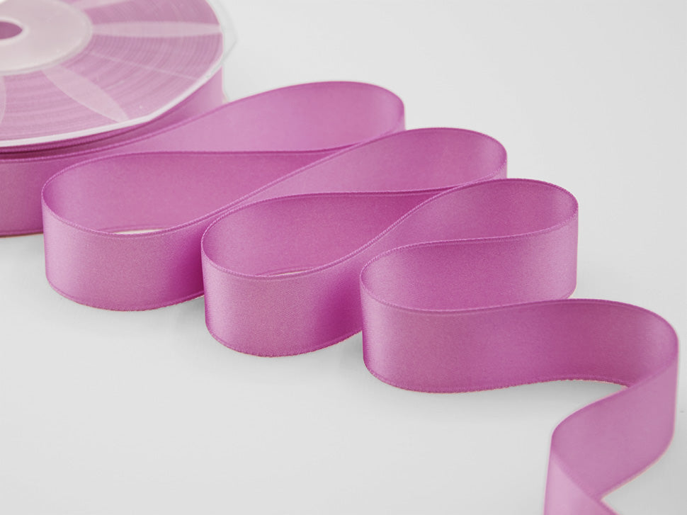 Il nastro elegante e raffinato per definizione è il doppio raso. È versatile e bello da lavorare e, nella sua semplicità, si presta ad ogni utilizzo. Essendo un prodotto di alta qualità si annoda molto facilmente formando un bel fiocco con le code che presentano un taglio netto e definito, che non si sfilaccia. Il suo aspetto è luminoso, consistente e corposo, ma al tatto è decisamente delicato e setoso. I suoi 25mm di altezza e le infinite possibilità di personalizzazione lo rendono un nastro ideale per molteplici utilizzi: dalla confezione di bomboniere di matrimoni e cerimonie alla decorazione dei fiori e della tavola; dalle confezioni regalo, anche natalizie, a tutti gli eventi di pregio. La bobina contiene 50 metri di nastro doppio raso 25mm. Disponibile in un’ampia gamma di tonalità e altezze, viene qui presentato nel colore 60, ciclamino chiaro