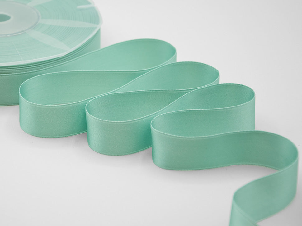 Il nastro elegante e raffinato per definizione è il doppio raso. È versatile e bello da lavorare e, nella sua semplicità, si presta ad ogni utilizzo. Essendo un prodotto di alta qualità si annoda molto facilmente formando un bel fiocco con le code che presentano un taglio netto e definito, che non si sfilaccia. Il suo aspetto è luminoso, consistente e corposo, ma al tatto è decisamente delicato e setoso. I suoi 25mm di altezza e le infinite possibilità di personalizzazione lo rendono un nastro ideale per molteplici utilizzi: dalla confezione di bomboniere di matrimoni e cerimonie alla decorazione dei fiori e della tavola; dalle confezioni regalo, anche natalizie, a tutti gli eventi di pregio. La bobina contiene 50 metri di nastro doppio raso 25mm. Disponibile in un’ampia gamma di tonalità e altezze, viene qui presentato nel colore 64, verde acqua marina